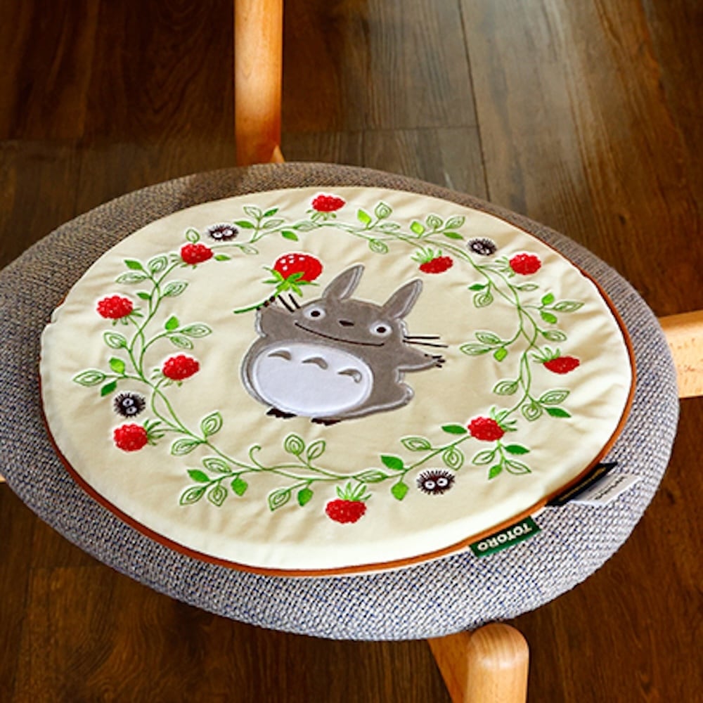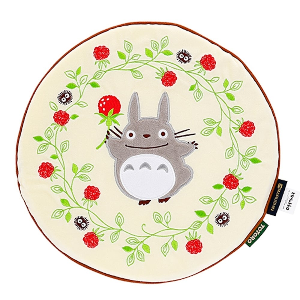 トトロと野いちごのリースがかわいらしい、円形タイプのシートクッション。