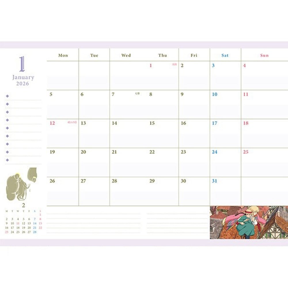 日々の予定管理はもちろん、ジブリの世界観を毎日楽しめるデザインで、予定を書く時間がちょっとした癒しに。