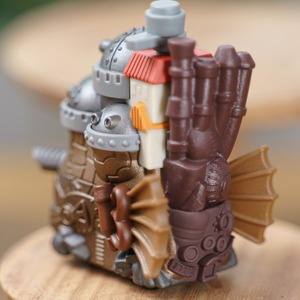 小さな家々など、再現できる限りの細かい造形・彫刻を施し、城(車体)の後ろには扉もあります。今にも動き出しそうな、ハウル城を楽しめます。